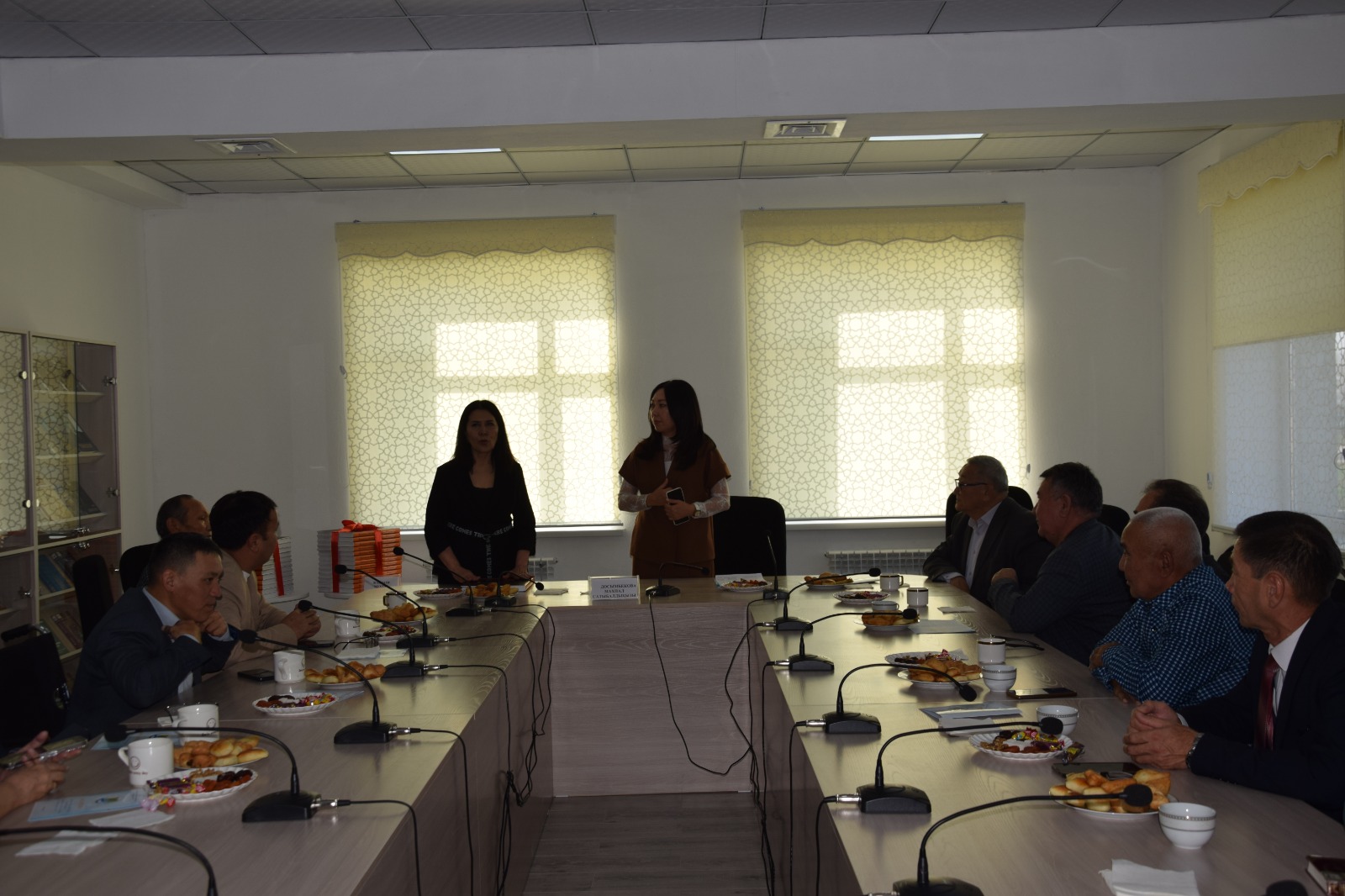 Конференц-залдағы «Өркениет өрісіндегі өңір руханияты» атты дөңгелек үстелде жергілікті қаламгерлер мен зиялы қауым өкілдері кітапхана қызметінің аймақ үшін маңыздылығын тілге тиек етті. Шараға қаламгер, ақын Байтанағали Төлентаев, журналист-жазушы, ауданның Құрметті азаматы Сансызбай Махамбетқұлов, Қазақстан Жазушылар одағының мүшесі Қуаныш Ауғанбаев, жазушы Нұржан Әліш, қаламгерлер Қайрат Отарбаев пен Сембек Пірімқұлов, айтыскер ақын Айтмұхамбет Исақов пен жас ақын Әсел Назаралы кітапхана қызметкерлерінің еңбегін жоғары бағалап, оның рухани кеңістікті қалыптастырудағы рөлін атап өтті.