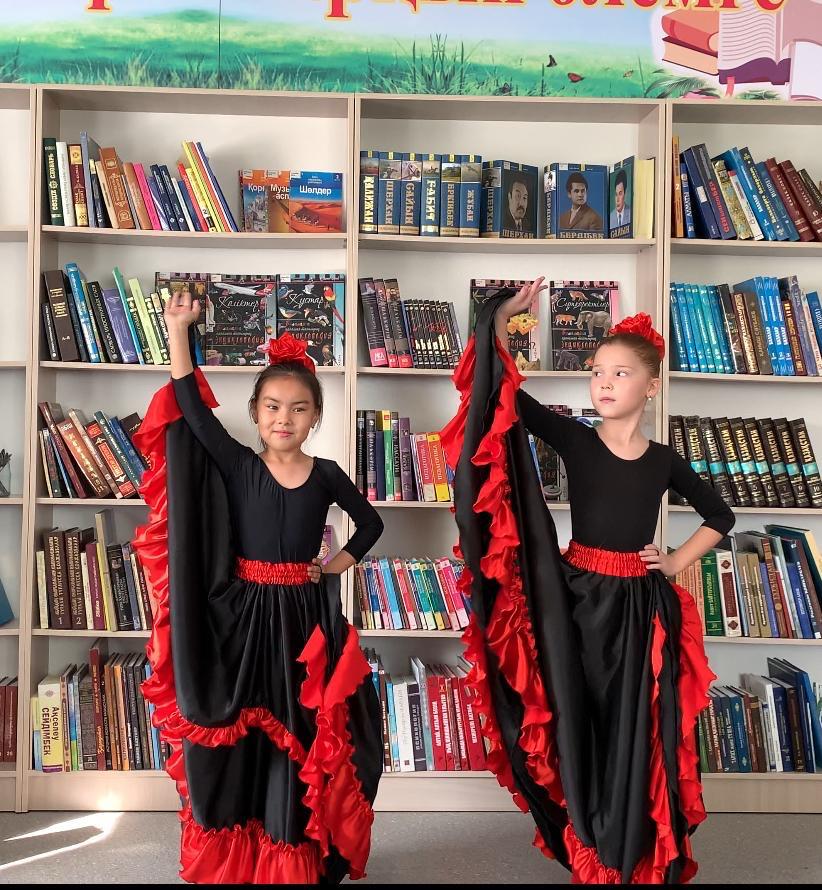Кітапхананың белсенді оқырманы Амангелді Р «Қазақ» биін орындап, көпшілікке көтеріңкі көңіл-күй сыйлады. Аудандық мәдениет үйінің «Салбұрын» триосының орындауында «Анаға сағыныш» «Попурри» әндері кештің шырайын кіргізсе, Амантай А. «Испан» биімен шашу шашты.