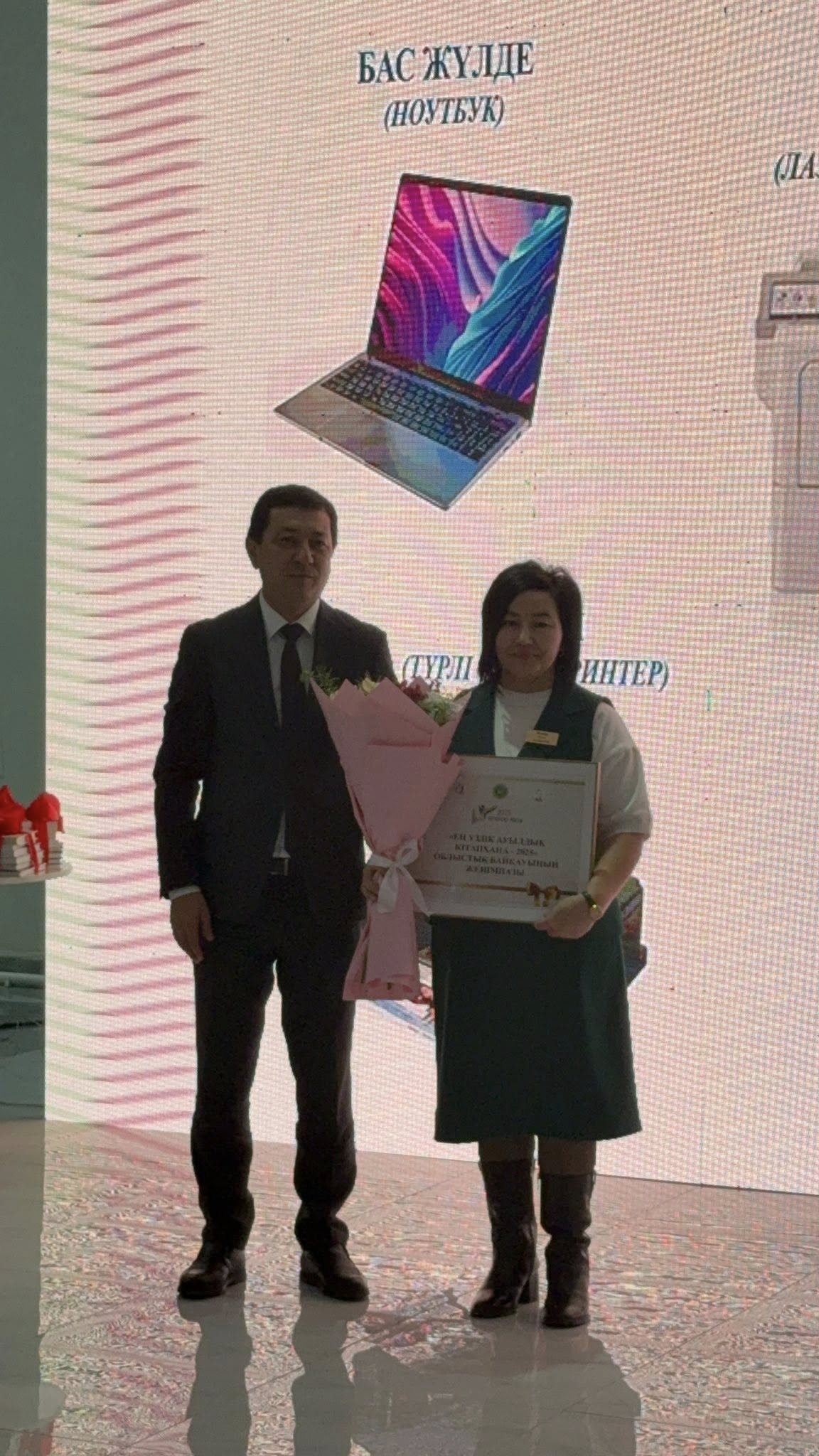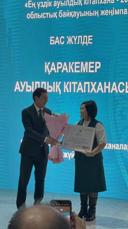 I орын жеңімпазы, Жамбыл аудандық орталық кітапхананың оқырманы, Әбдіқапарова Ғалия салтанатты түрде марапатталды.