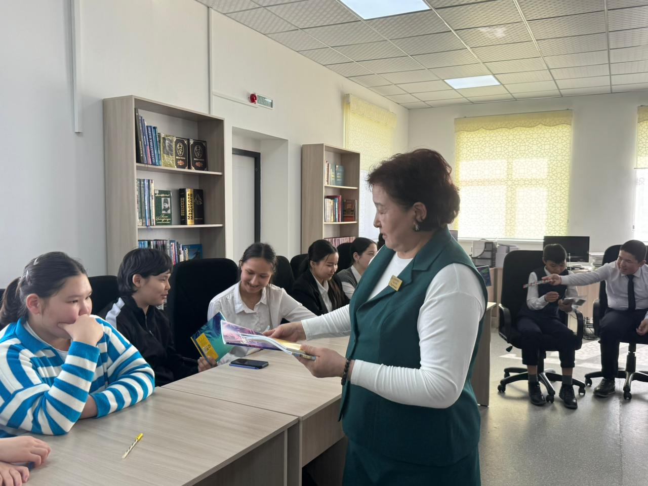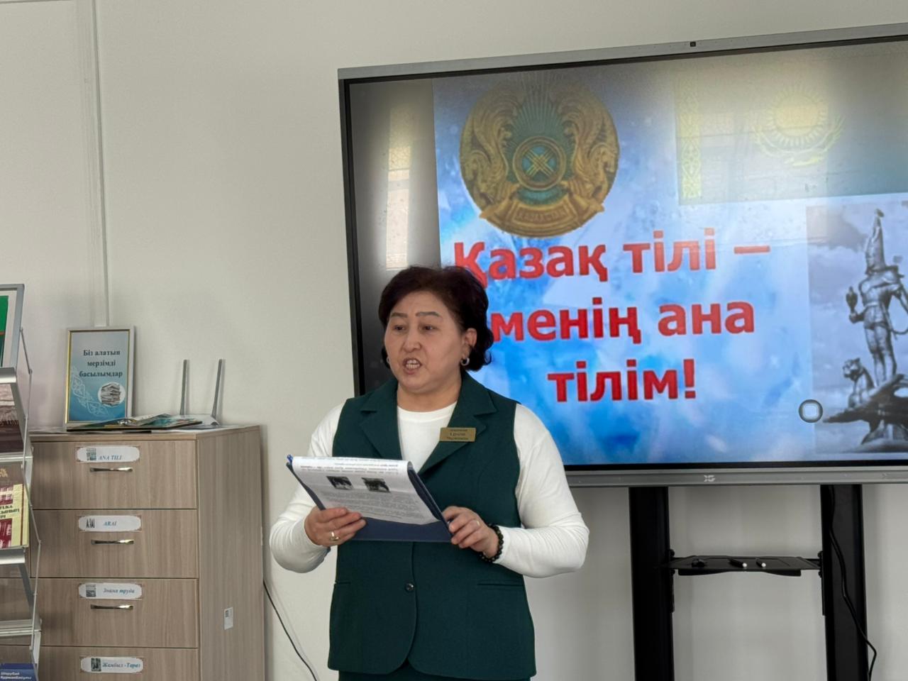 Аудандық орталық кітапхананың ұйымдастыруымен 21 ақпан - Халықаралық Ана тілі күніне орай "Ана тілі- мәңгі құламайтын бәйтерек" тақырыбында №1 тірек мектебінің 8 «Ә» сынып білім алушыларының арасында сайыс өтті.
