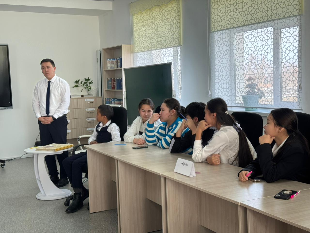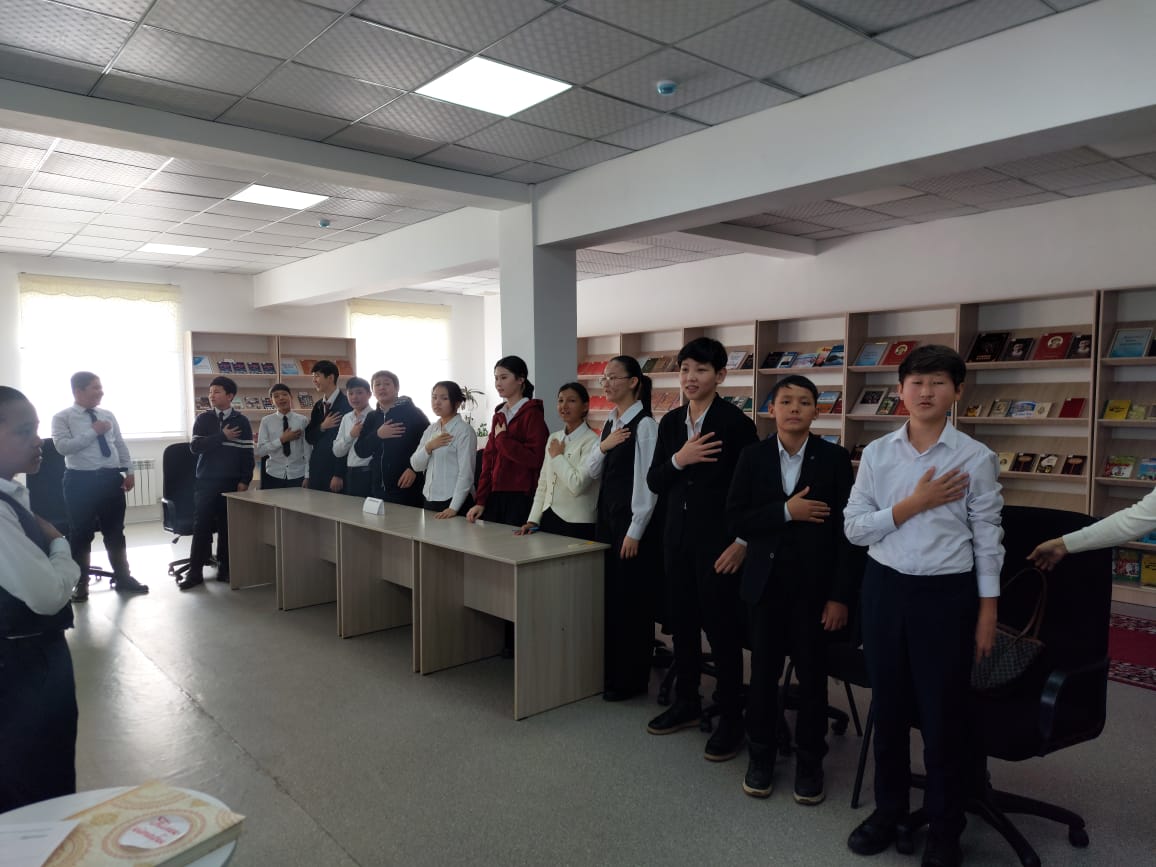 Кеш қонағы: Жамбыл ауданы әкімдігінің мәдениет және тілдерді дамыту бөлімінің бас маманы Орынбаев Нұрдос Әзімбайұлы мен №1тірек мектебінің ұстазы Жамалбекова Салтанат қатысты.