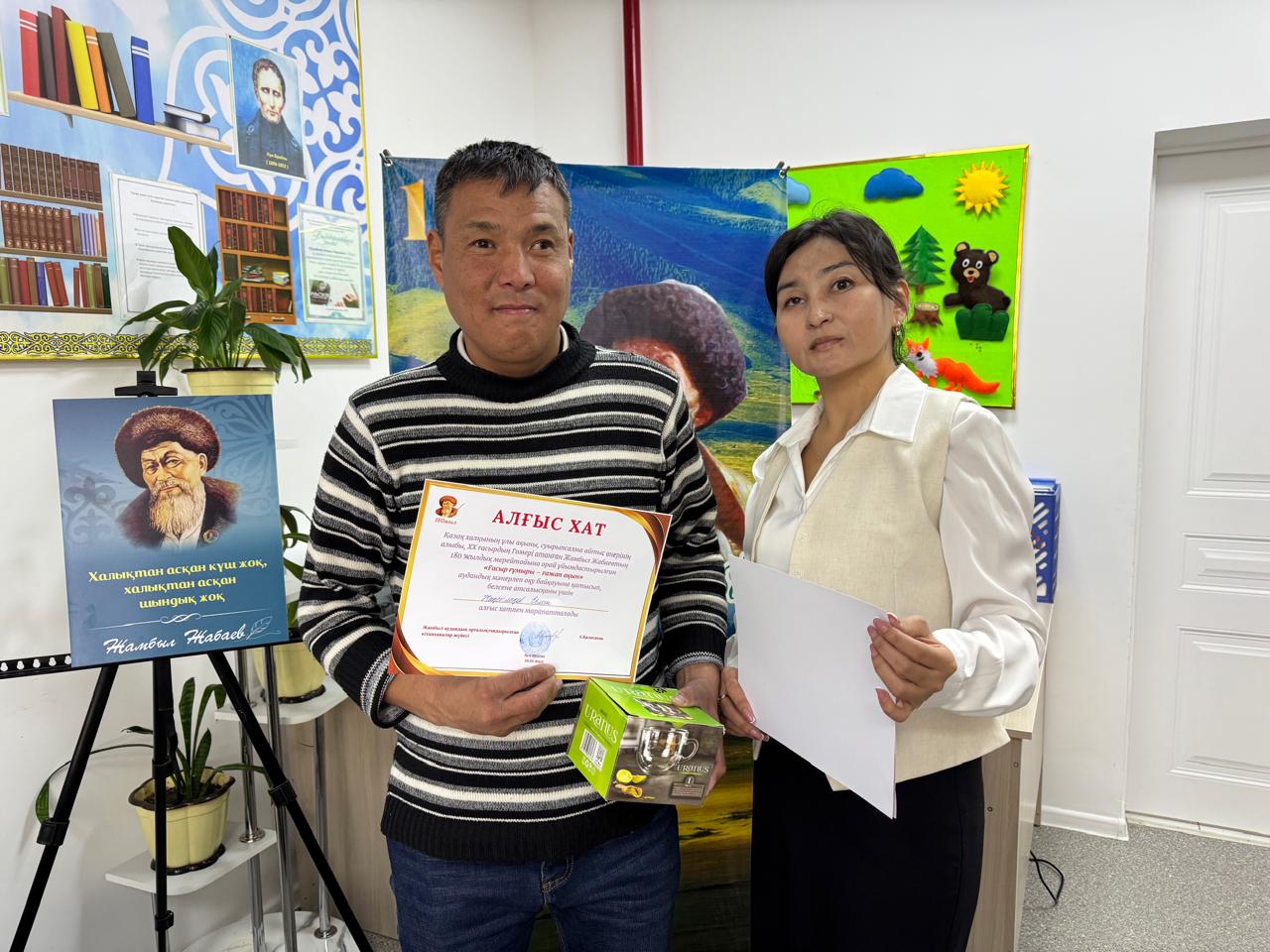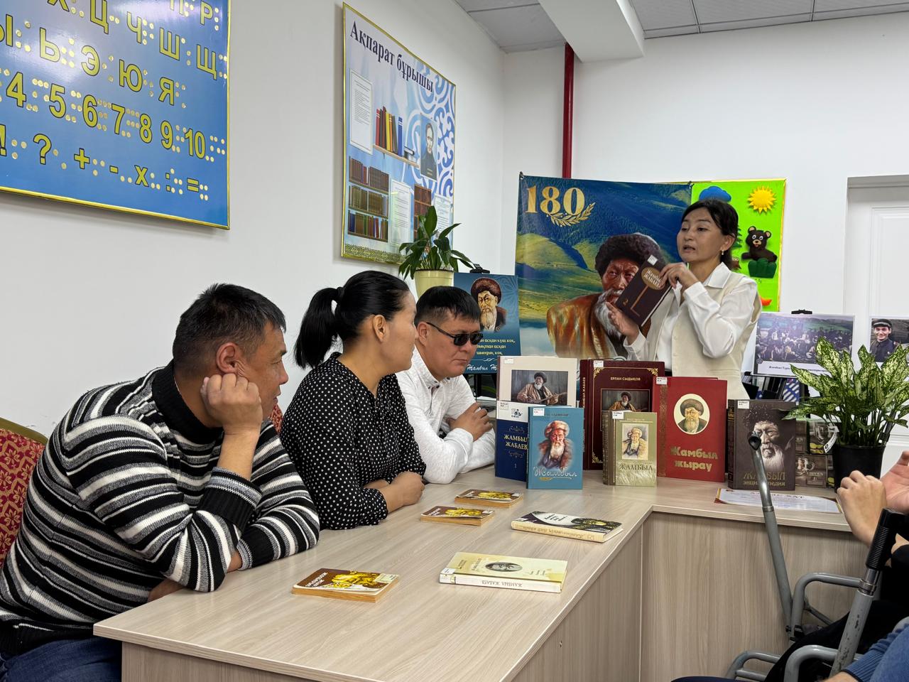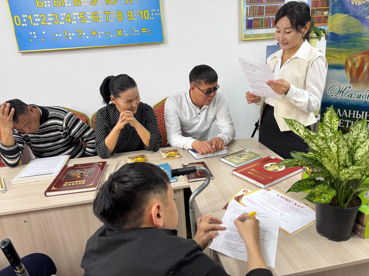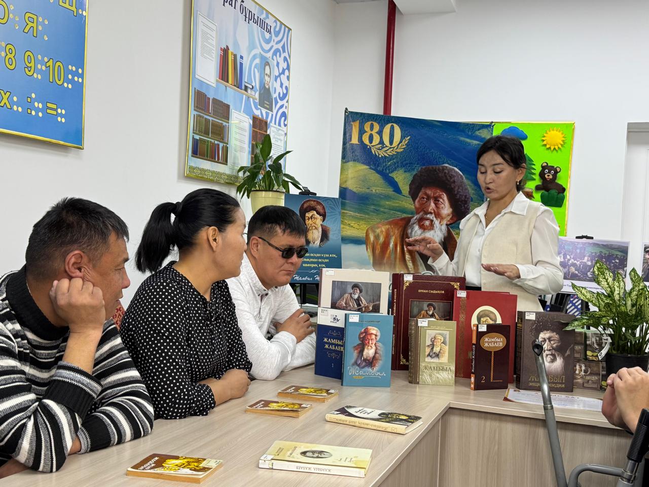 Жамбыл аудандық зағип және көзі әлсіз көретін азаматтар бөлімінің ұйымдастыруымен «Ел болып оқимыз» жобасы аясында қазақ халқының ұлы ақыны Жамбыл Жабаевтың 180 жылдық мерейтойына арналған «Ғасыр ғұмыры – ғажап ақын» атты мәнерлеп оқу кеші өтті.